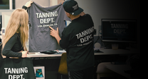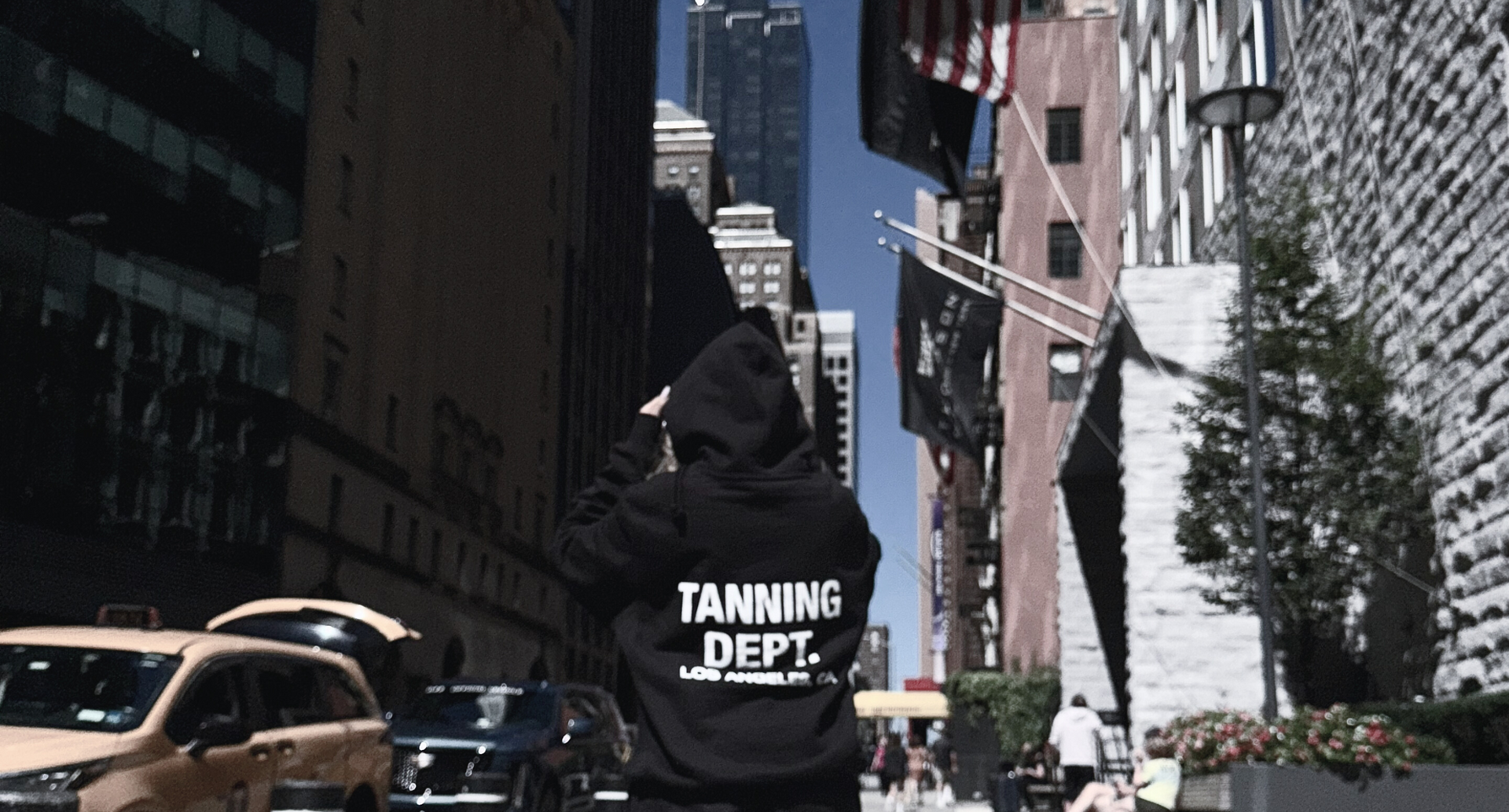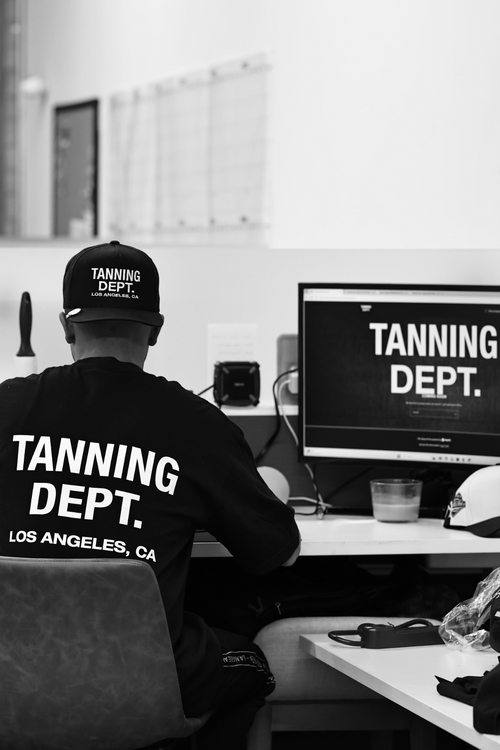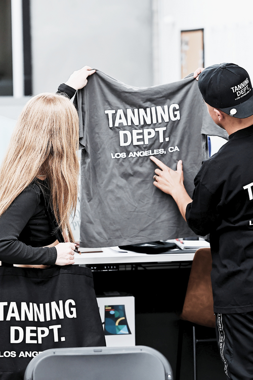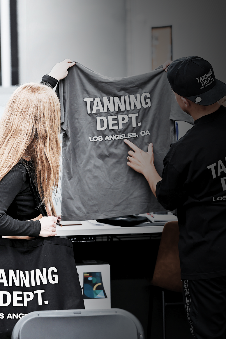 Tanning Artist Identity — Iconic back graphic with a clean chest detail up front.