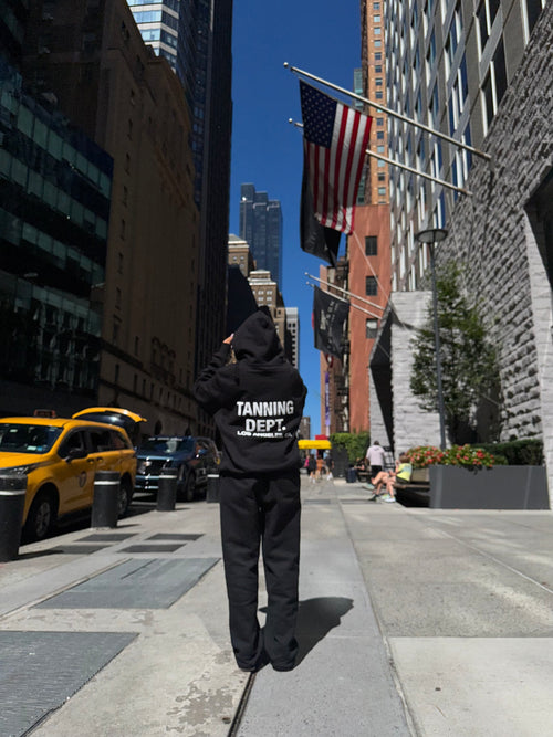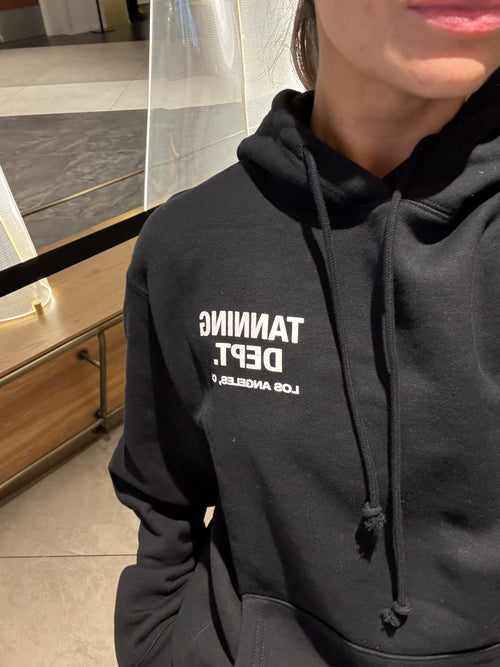 Comfort meets tanning culture. This heavyweight black hoodie keeps spray tan artists cozy and warm through early call times, late shifts, and everything in between.